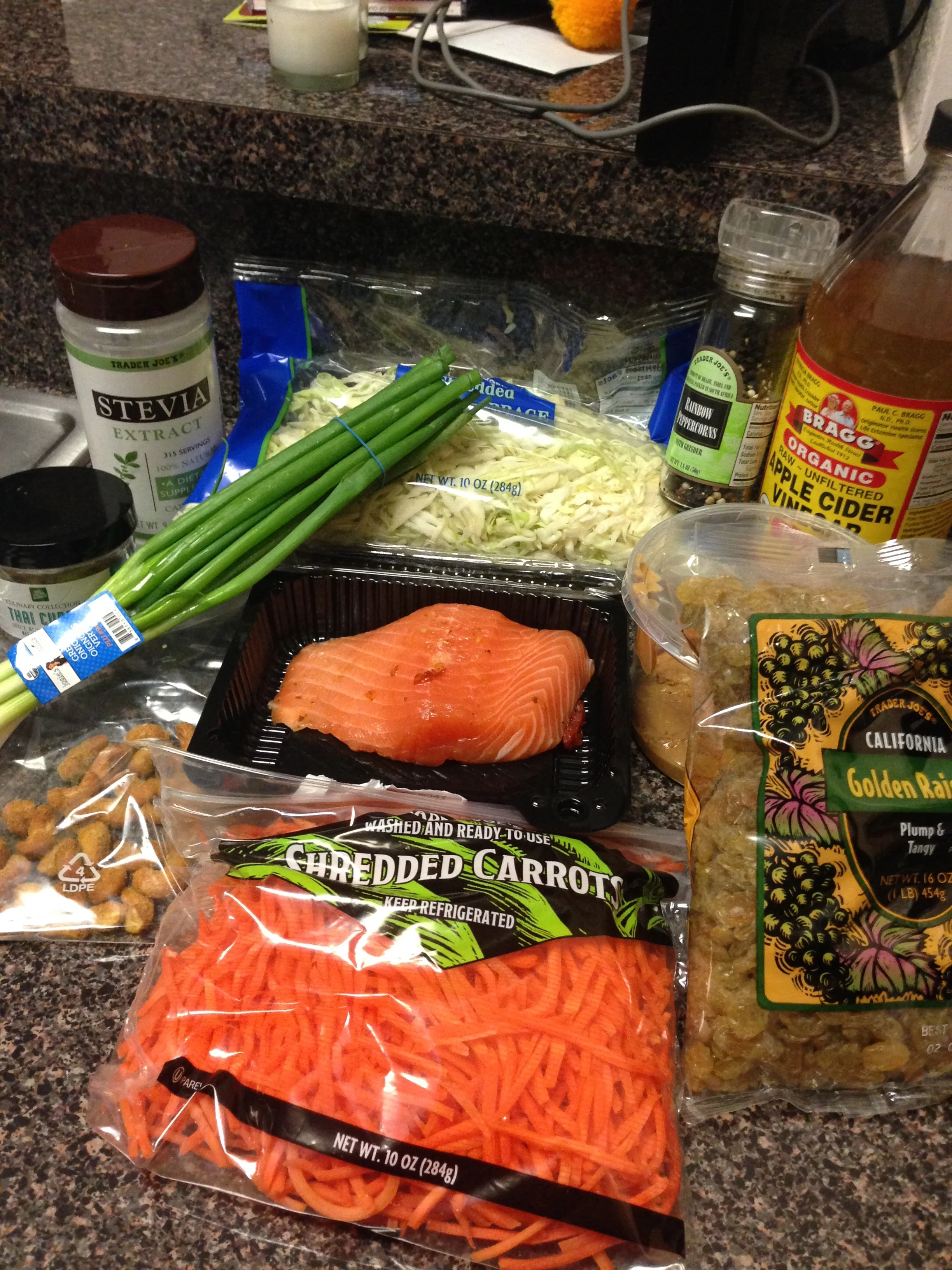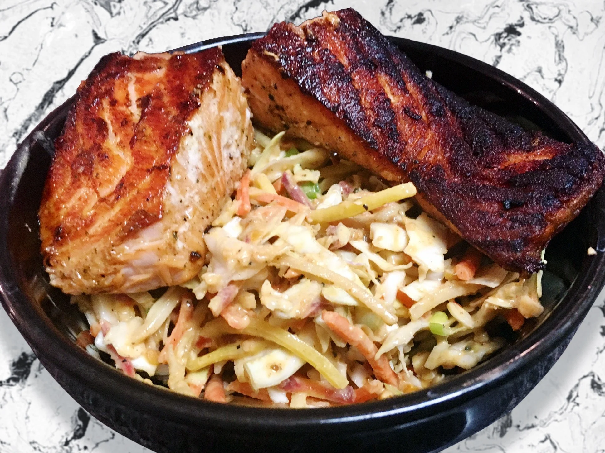Pour peanut butter mixture over the cabbage mixture and combine well. Add pepper and salt, to taste. Allow to sit for 5-10 minutes while you prepare the salmon.